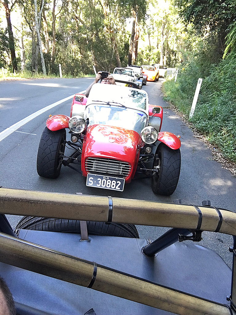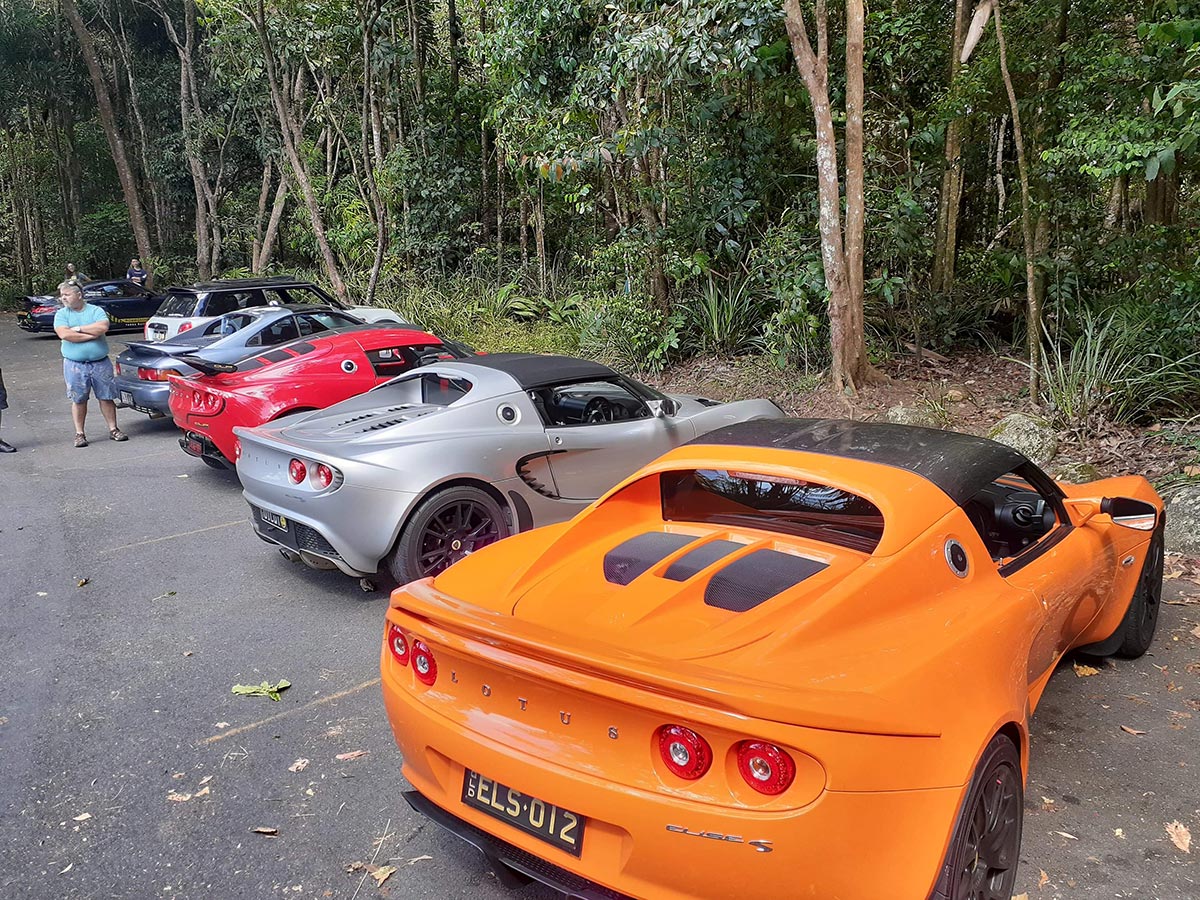 A great turn out with the usual Mt Glorious bandits, some clad in high performance Thongs, Flip Flops or Jandals and it was nice to welcome a couple of new runners–fresh blood so to speak–Adam and Rob in Elises and Sam in his Exige S.
