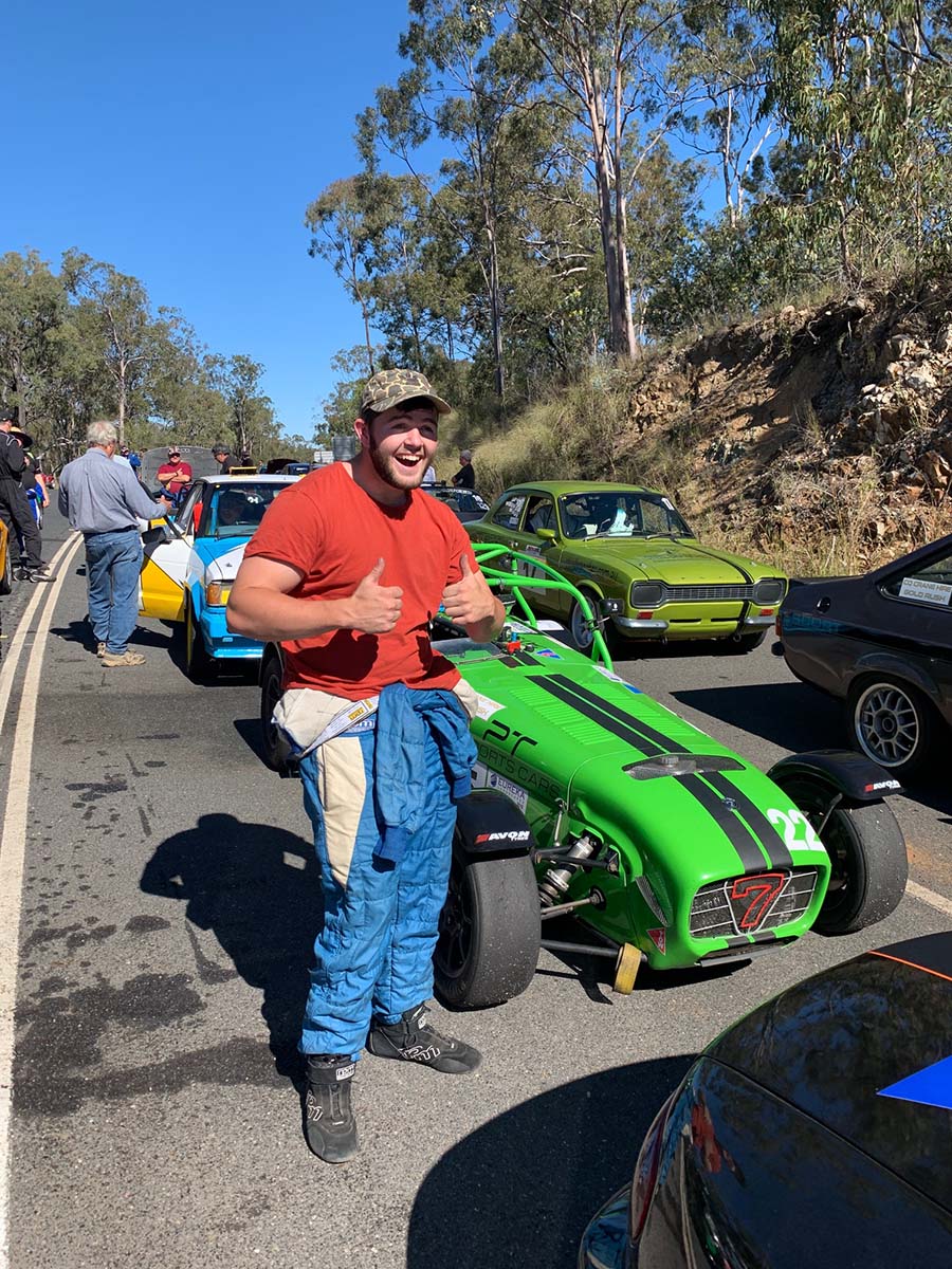 The weather was a mild for a winter weekend in Warwick which was nice, but not without the customary weather-affected running for this time of year. Friday afternoon practice was clear, but Saturday morning’s start was delayed by an hour while we waited for the fog to lift and the roos to be shooed away, Sunday’s running was slow due to early morning rain and a wet track.