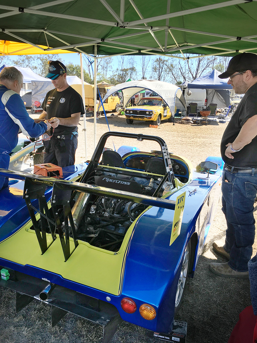 The weather was a mild for a winter weekend in Warwick which was nice, but not without the customary weather-affected running for this time of year. Friday afternoon practice was clear, but Saturday morning’s start was delayed by an hour while we waited for the fog to lift and the roos to be shooed away, Sunday’s running was slow due to early morning rain and a wet track.